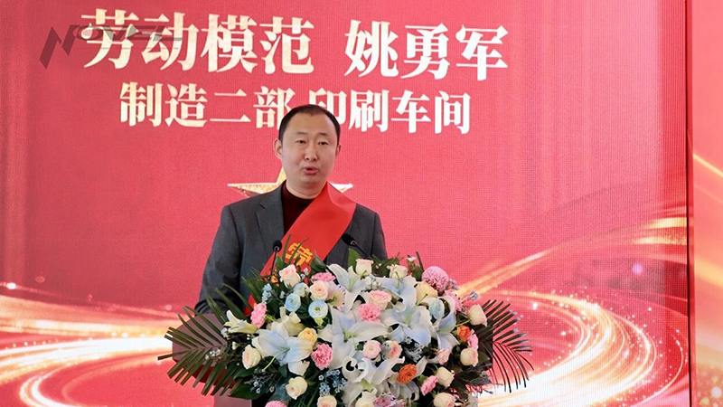 勞動模范、制造二部姚勇軍代表受表彰的先進員工發言,分享奮斗感悟、傳遞榜樣力量,表示將珍惜榮譽、再接再厲,立足崗位、再創佳績。